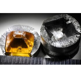 HPHT diamonds are named after the conditions under which they are synthesized: High Pressure, High Temperature. These parameters were gradually refined over decades based on the natural conditions under which diamonds form in the Earth's mantle. The synthesis conditions were first outlined in 1939 by the Soviet chemist O. I. Leipunsky: pressure of 6 – 7 GPa and temperature of 1500 – 1700 °C [1]. Types of HPHT Presses There are four primary types of presses used for HPHT diamond synthesis: Cubic press Belt press Toroid press BARS (split-sphere press) Each differs in design and is suited to growing crystals of specific sizes and qualities. Cubic press (left), BARS apparatus (right) Synthesis Process The process begins with the selection of a growth cell, into which the following components are placed: One or more diamond seed crystals, which serve as nucleation centers for carbon atoms to form single crystals; A metal solvent catalyst — a proprietary alloy such as Ni-Fe-C or Co-Fe-C — which dissolves graphite, accelerates diamond growth, and helps reduce inclusions; Carbon source in the form of diamond powder or graphite. In Europe, memorial diamonds are often created using HPHT technology, where the carbon source is derived from human ashes, a lock of hair, a bridal bouquet, or other sentimental materials. Types of growth cells: cubic press (left), BARS system (right) Growth Conditions The assembled growth cell is placed into the press, where a pressure of 50,000 – 60,000 atmospheres is applied, and electric resistors heat the system to 1300 – 1600 °C. These conditions simulate the natural environment in which diamonds form within the Earth’s mantle. Structure of a diamond growth cell Once the target temperature and pressure are reached, carbon (usually in the form of graphite) dissolves in the molten metal solvent in the hot zone. The dissolved carbon then migrates toward the cooler zone, where a small diamond seed crystal is located. The diamond gradually grows on this seed. By the fourth day, the rough crystal can reach a size of 2 carats [2]. Temperature is constantly regulated so that the carbon source zone remains approximately 30 °C hotter than the seed zone. Increasing this temperature difference accelerates crystal growth but often results in lower quality. On average, the HPHT diamond synthesis process lasts between 5 and 10 days. Effect of Additives Various additives introduced into the metal solvent significantly influence the color and quality of the resulting diamond crystals: Aluminum and titanium can capture nitrogen, which is responsible for yellow coloration. This allows for the production of colorless diamonds; Boron enables the formation of blue or colorless diamonds with electrical conductivity — valuable in both the jewelry and electronics industries. These decolorized diamonds may display a bluish tint when viewed through the pavilion after faceting. The concentration of these additives is carefully calibrated to achieve the desired hue and optical clarity. This precision allows the creation of diamonds with engineered physical and aesthetic properties. Colored HPHT diamonds Post-Synthesis Processing At the end of the synthesis process, the solidified mass containing the diamond crystals is treated with a mixture of boiling acids (typically 90 % sulfuric acid and 10 % nitric acid). Diamonds are chemically resistant to both acids and alkalis, so the treatment dissolves the solidified metal solvent, leaving behind clean raw crystals. The extracted diamonds are then rinsed with water and sent for further processing. HPHT synthesis yields two main types of diamond material: Bort — polycrystalline diamond powder for industrial applications; Monocrystals — single crystals used in jewelry and high-precision industrial tools. Monocrystals typically exhibit a cubo-octahedral shape, and their size is determined by preset synthesis parameters, including the dimensions of the growth cell and the growth conditions [3]. The largest diamond produced by the HPHT method as of 2020 was grown by the Russian company New Diamond Technology LLC, based in St. Petersburg. The crystal weighed 129.47 carats After cleaning, the rough diamonds undergo cutting and faceting. A master gem cutter examines each crystal to identify the cleanest, inclusion-free areas and determines the best shape to bring out its potential. In some cases, the diamond is cut in the natural form it developed during synthesis. These are known as As-grown diamonds. The HPHT method not only replicates natural diamond formation but also enables the creation of crystals with engineered characteristics — from color to electrical conductivity. Modern technologies continue to advance, making diamonds that are perfect in shape, clarity, and color increasingly available — not only for jewelry, but also for use in medicine, quantum technologies, and industry. References 1. Leipunskii O. I. (1939). Ob iskusstvennykh almazakh [On Synthetic Diamonds]. Uspekhi khimii — Russian Chemical Reviews, vol. 8, iss. 10, pp. 1519 – 1534. 2. Palyanov, Yu. N. (2008). Gde rastut almazy [Where Diamonds Grow]. Nauka iz pervykh ruk — Science First Hand, no. 1 (19), pp. 12 – 31. 3. Smith, G. (2006). Dragotsennye kamni [Gemstones] (A. S. Arsanov et al., trans. ; 3rd ed., exp.). Moscow: AST, Astrel. 511 p.